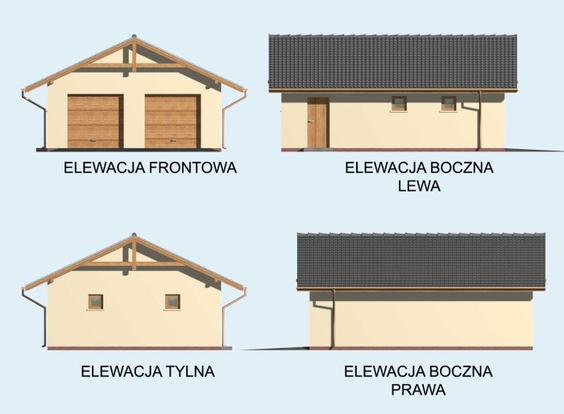 Dokumentacja projektowa opracowana jest w dwóch wersjach: jako garaż i jako budynek gospodarczy (wyboru wersji należy dokonać przy składaniu zamówienia).