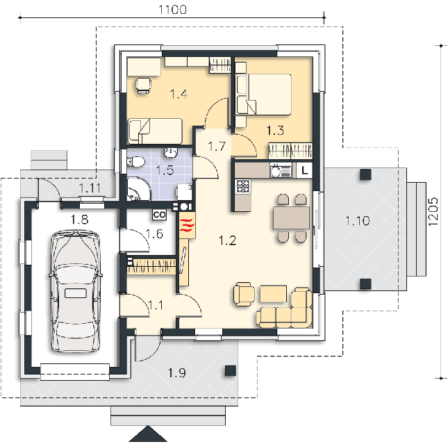 Ważne jest także usytuowanie działki i domu względem stron świata, gdyż to właśnie decyduje o stopniu nasłonecznienia poszczególnych pomieszczeń. Dlatego każdy projekt oferujemy w dwóch wersjach: podstawowej oraz lustrzanej, aby można było wybrać najkorzystniejszy układ pomieszczeń względem stron świata, a także względem ukształtowania krajobrazu w otoczeniu działki.